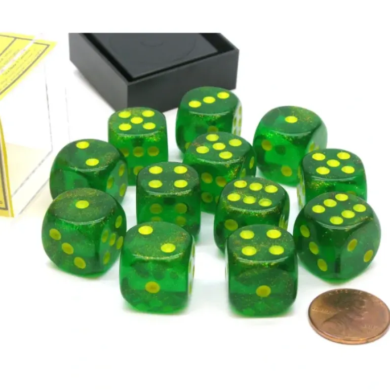 These Borealis 16mm dice have a great look, feel, and roll. They are numbered 1 to 6 with traditional dice pips, spots, etched into the surface of the dice. Use these dice to play your favorite dice and board games or create your own game. 12 dice and 1 plastic display case included with purchase.