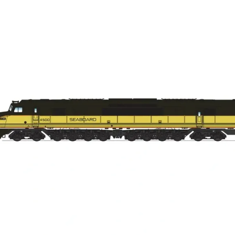 This is a Broadway Limited 2508 HO Scale Seaboard Air Line Baldwin Centipede Diesel Locomotive with Sound & DCC – Paragon2 #4500 (Citrus Scheme). Features include: Paragon 2 Sound & Control System * Integral DCC decoder * Precision drive mechanism engineered for continuous heavy load towing and smooth slow speed operation * 5-pole can motor with skew would armature * Authentic paint schemes * Prototypical light operation with golden white LED headlight * Operating metal knuckle couplers * Factory-instAlled engineer and firemen figures * Minimum radius: 22.