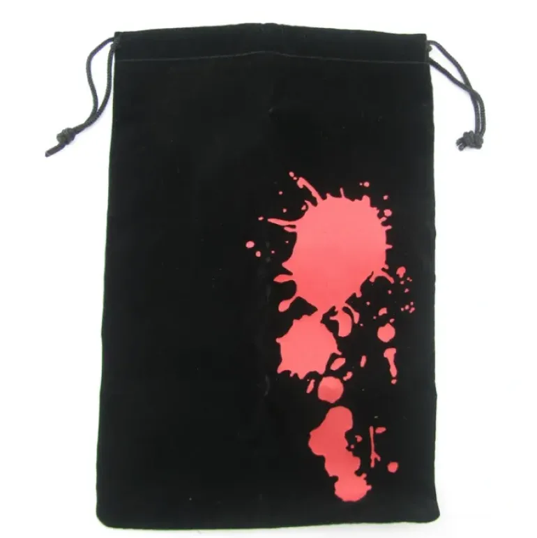 This item contains one 6.25″ x 9″ (15.9cm x 22.9cm) dice bag with a polypropylene draw string. The dice bag is composed of 50% polyester and 50% nylon.