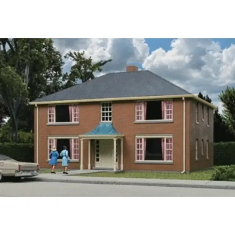 The Walthers Cornerstone Four-Unit Brick Apartment Building is typical of those constructed by the thousands in the postwar era. Often built in groups in a single neighborhood, many of these small apartment buildings are still desirable in the modern era. Designed for making it easy to add several buildings to your neighborhood, this kit includes peaked or hip-style roofs for easy customizing. As shown the Four-Unit Brick Apartment Building measures: 5-3/4 x 5-13/16 x 3-5/8 14.6 x 14.7 x 9.2cm,