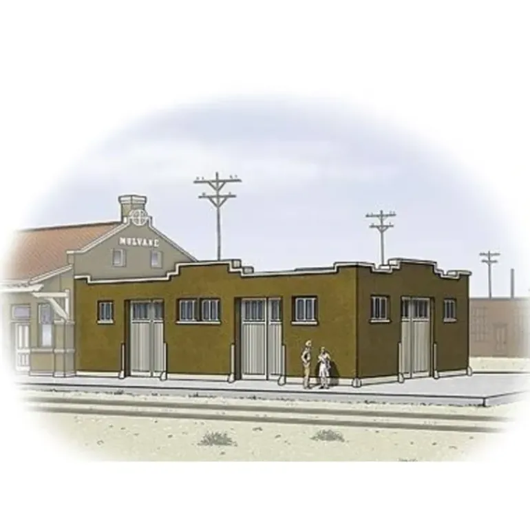 This is Walthers N Scale Cornerstone Santa Fe-Style Brick Freight House Building Kit. The new Cornerstone Series N Scale Santa Fe-Style Brick Depot, Santa Fe-Style Brick Freight House and Santa Fe-Style Brick Depot w/Freight House combination kit bring a much-requested family of structures to N Scale. This new model is based on depots built systemwide on the Santa Fe circa 1908. The depot features brick construction with a large arched window on the operator’s bay, wood eave supports and a tile roof. The matching freight house was where express shipments were handled. In most cases it was attached, and the depot kit includes an extra end wall to allow for this. The freight house kit can also be built as a freestanding facility. Several depots had an expanded freight room that can be modeled by combining several freight houses. The combination kit includes the depot and one freight house. While the depot is based on a common Santa Fe depot, it’s similar to structures used by several western railroads, so it’ll look at home on almost any layout. 6-3/4 x 3-3/4 x 1-1/2.