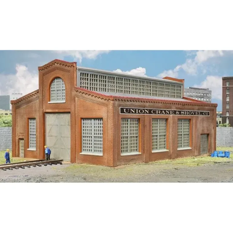 This is a Walthers 933-3826 N Union Crane and Shovel Building Kit. Based on typical early 20th Century industrial buildings the Walthers Cornerstone Union Crane and Shovel Co. is an easy-to-build kit that will add realism to older industrial areas on your layout. The building features a railcar door and grooves in the base to accept Code 80 rail. Brick curtain-wall construction, a tall center clerestory and large, multi-paned windows give Union Crane and Shovel a vintage industrial look that’s perfect in any steam or diesel-era layout. Dimensions: 5-5/8 x 4-1/4 x 3 14 x 10.6 x 7.5cm