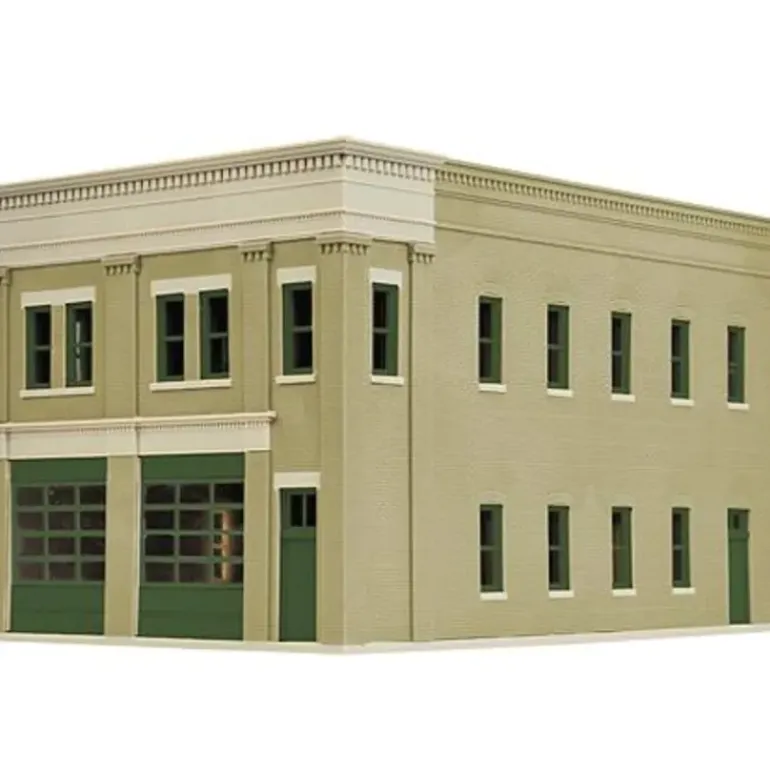 The Walthers Cornerstone HO Scale Two-Bay Fire Station is a typical 20th Century firehouse that’s at home in any town or city. Featuring realistic brickwork and an ornate concrete cornice this structure can be constructed with or without a tall hose-drying tower. It can also be customized to fit your favorite era since the kit includes your choice of modern glass or vintage wooden garage bay doors. The finished Two-Bay Fire Station model measures: 8 x 4-7/8 x 5-1/2 20.3 x 12.4 x 14cm; Height with tower: 9-1/2 24.1cm
