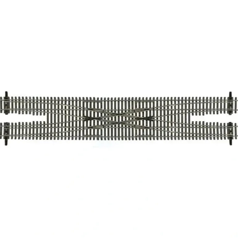 This is a Walthers 948-8812 HO Scale Code 83 #6 Double Crossover. These new versions feature electrically isolated frogs and points to eliminate polarity problems that may cause short circuits when decoder-equipped locos or cars with metal wheels enter the turnout.